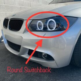 Switchback is a term to describe white rings or white LED strips that have an amber function built into them. The amber circuit is typically used in conjunction with turn signal power so that the rings/strips turn amber when the turn signal is depressed, and will blink amber. It will return to white after the turn signal is released. The amber circuit is optional and can be left disconnected.