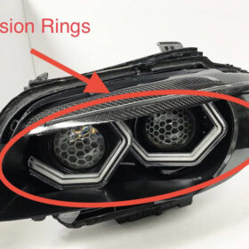 Etched rings have etched lines on the outer side of the acrylic angel eye covering. This mimics the newer OEM style rings on the newer F series vehicles, while standard rings are missing this feature.