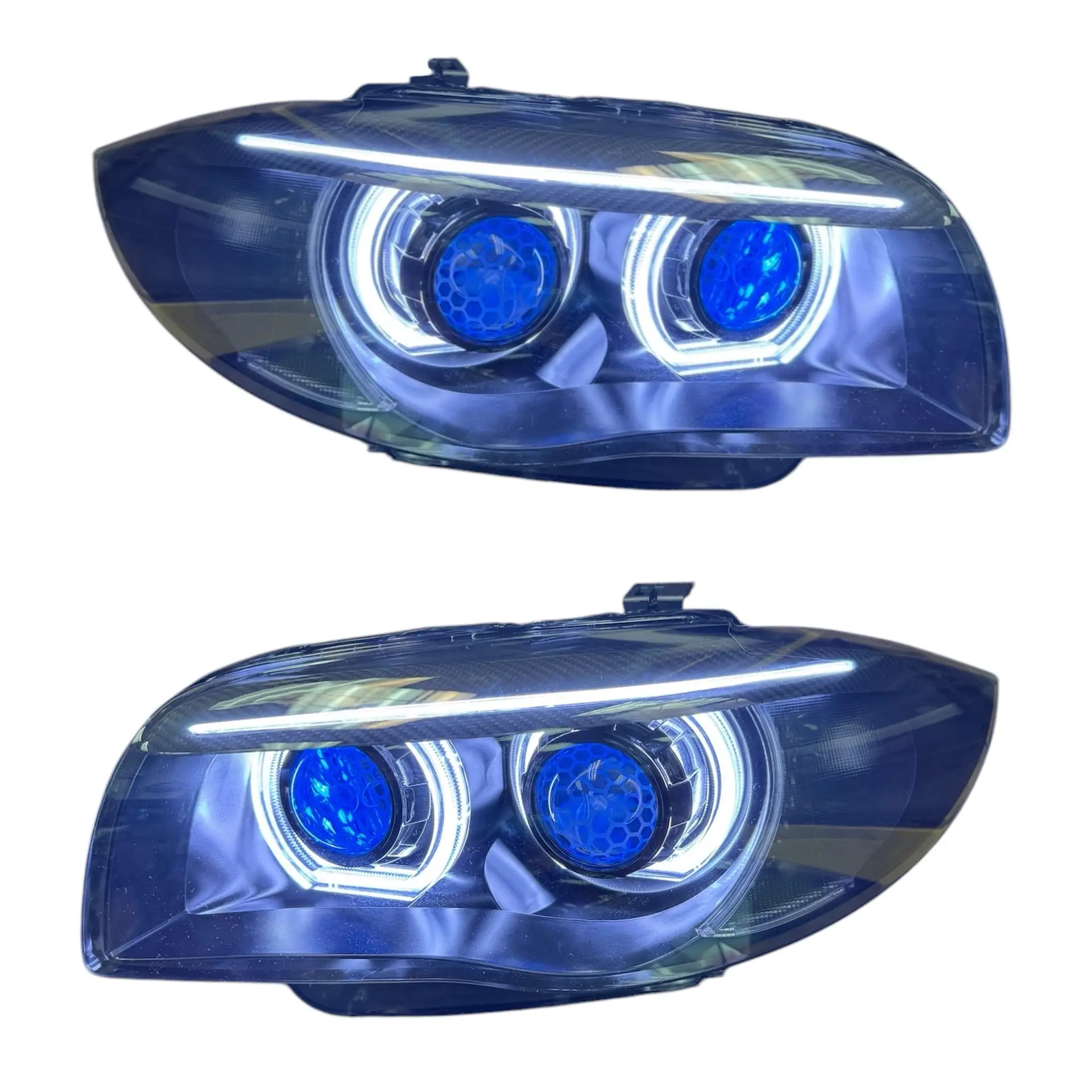 Ever look at your old E82 halogen headlights and wish they were the updated newer technology on modern cars? Our LED ring and brow retrofit on these pre built headlights solve all of that as they feature the brightest rings on the market!