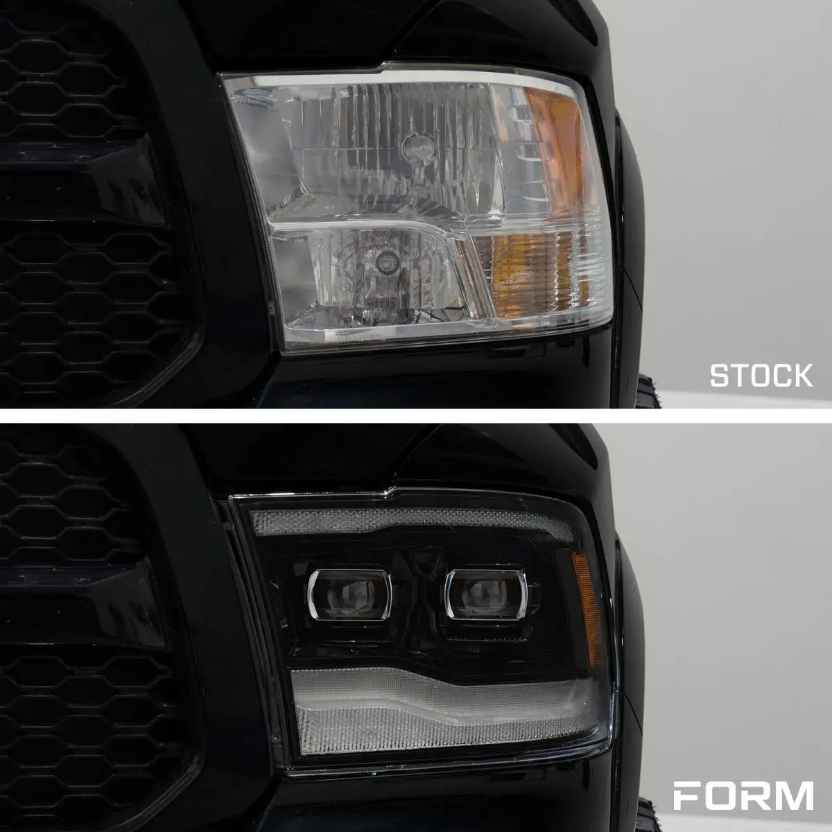 Your 2009-2018 Ram deserves an upgrade, and Sequential LED Headlights from Form Lighting are the perfect way to do it. These headlights were specifically designed to mimic the premium OEM design of the 2019+ Ram, giving your truck a modern feel on the road. With these premium OE-grade replacements, you’ll add full LED housings with two dual-beam projectors, sequential turn signals, startup sequence, LED running light, and a more aggressive, blacked-out appearance.