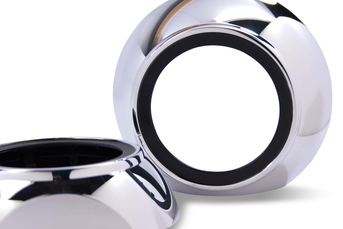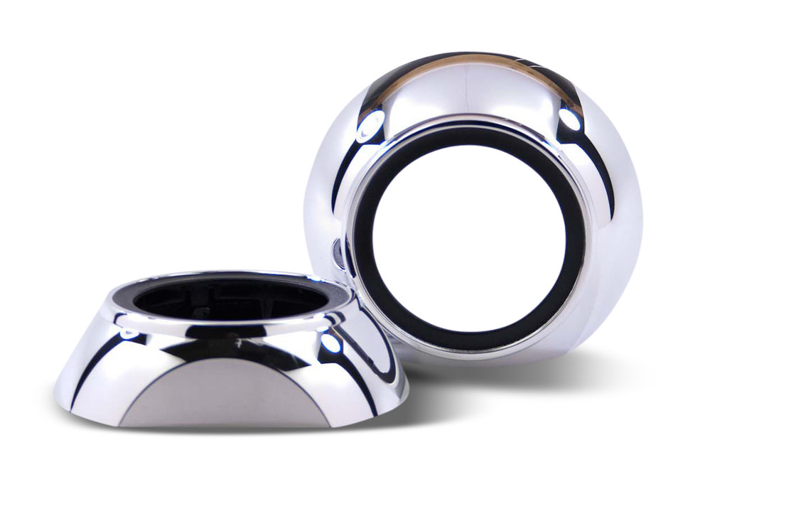 IRIS:Â As smooth as they come – The Iris shroud is a clean way to cover up. This instant classic is inspired by the Volkswagen Tiguan. Iris is all about adding a clean and clutter-free style to your retrofit. They feature a textured black lip that surrounds the glass projector lens on the inside, surrounded by a perfectly smooth vacuum metalized chrome finish.