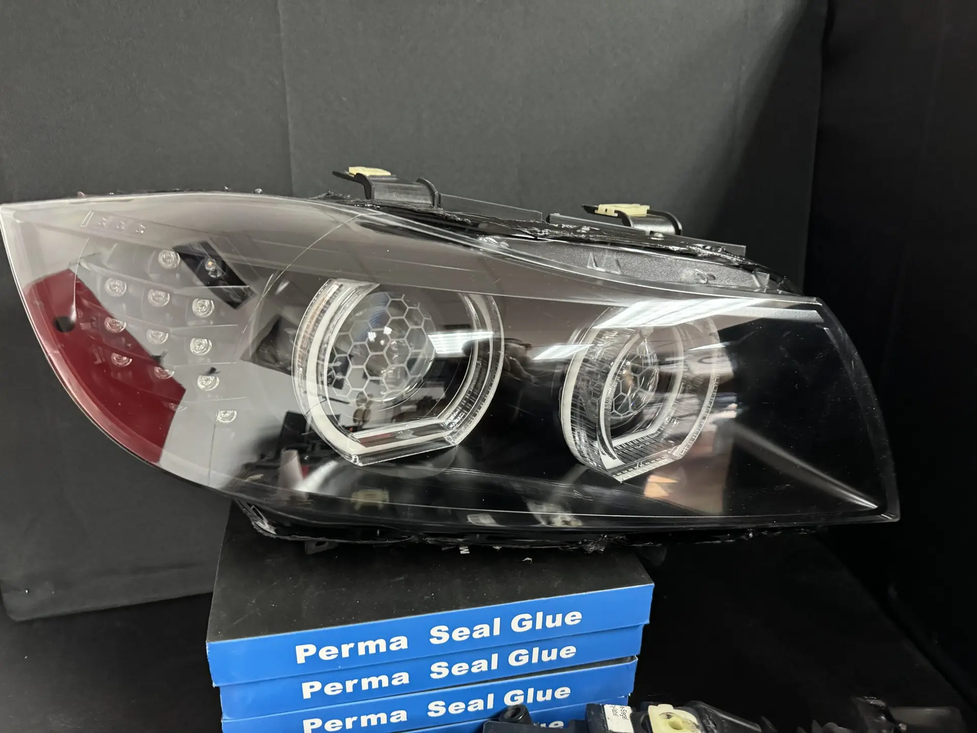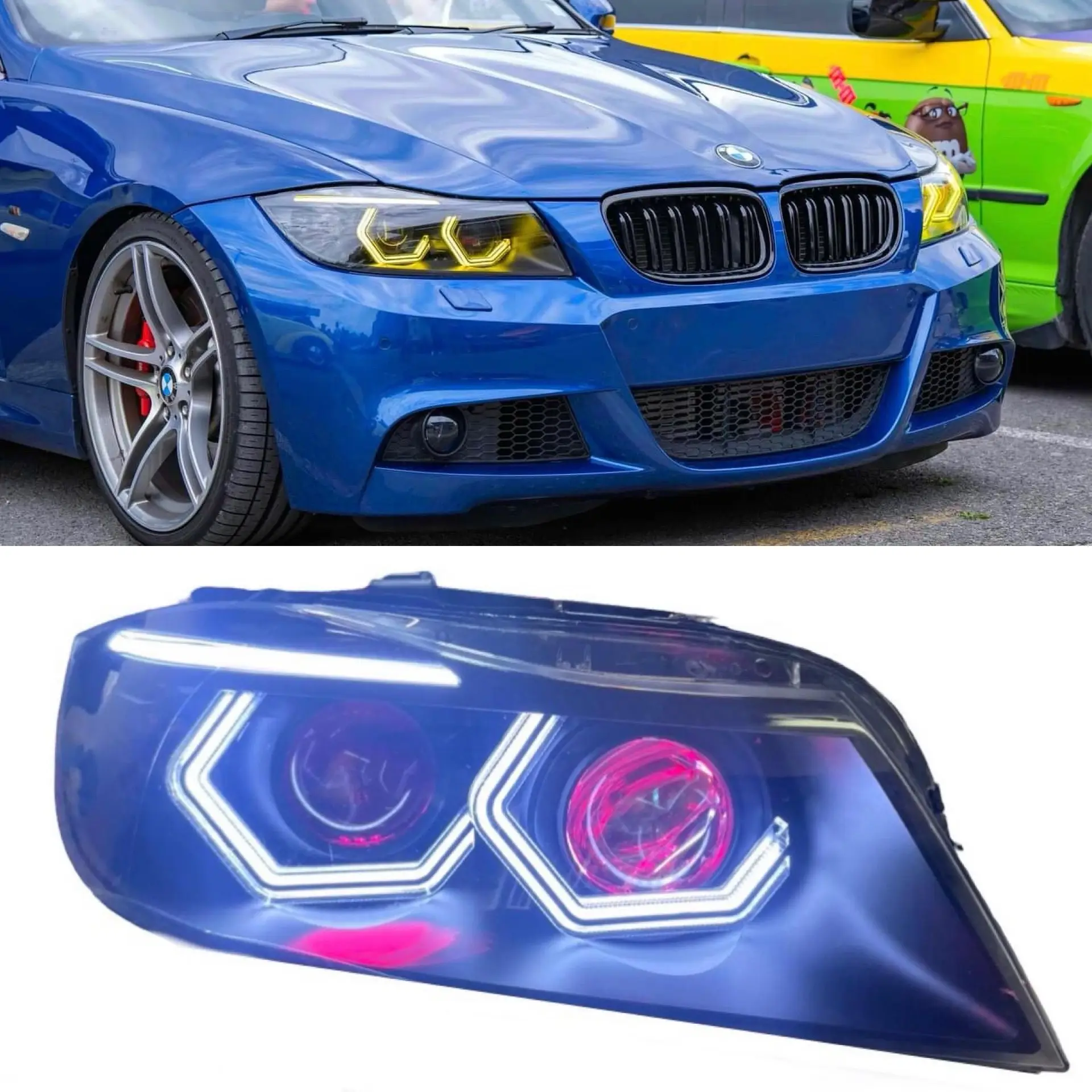 The OEM ring setup on your old E90 LCI headlights suffers from very old technology which results in uneven rings where the outers are brighter (and not very bright to begin with) than the inners, and they are also an unsightly yellow which makes the car look very old and dated. Our LED ring and brow retrofit solves all of that as they feature the brightest rings on the market in a very modern 6k white color!